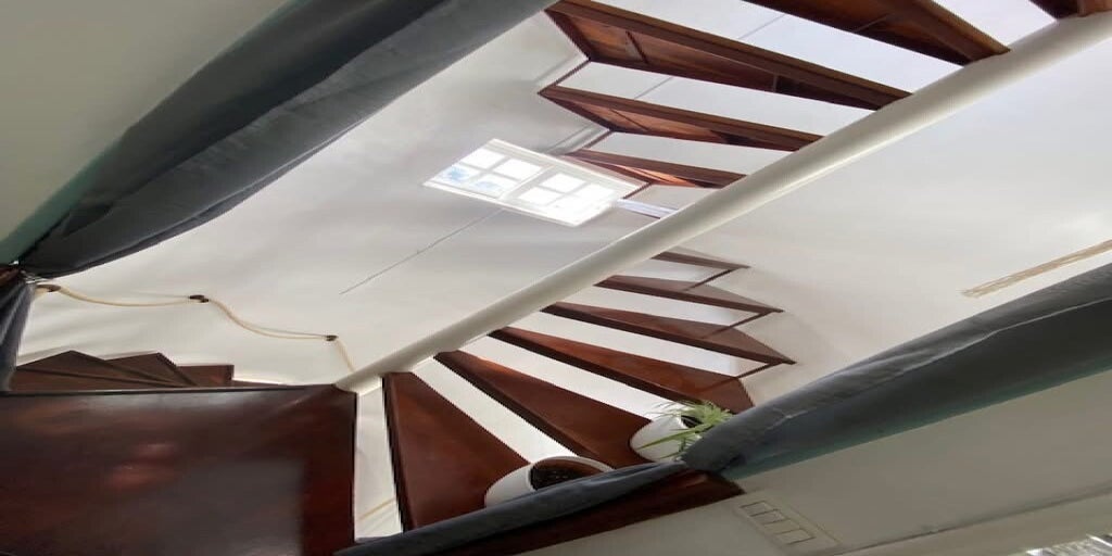 From the bedroom, a staircase leads to a small private space where the current owner has created her own wellness corner, with gym equipment for training without leaving home. The penthouse is sold fully furnished, ready to be enjoyed by new owners seeking a sophisticated and stylish home.